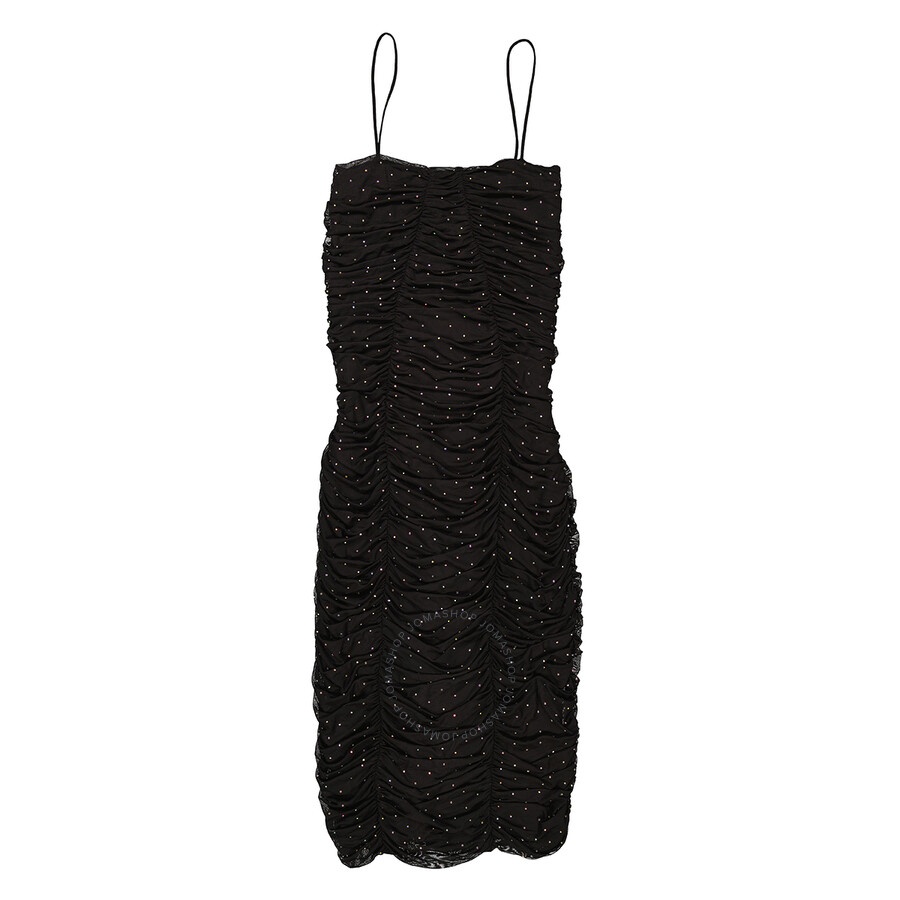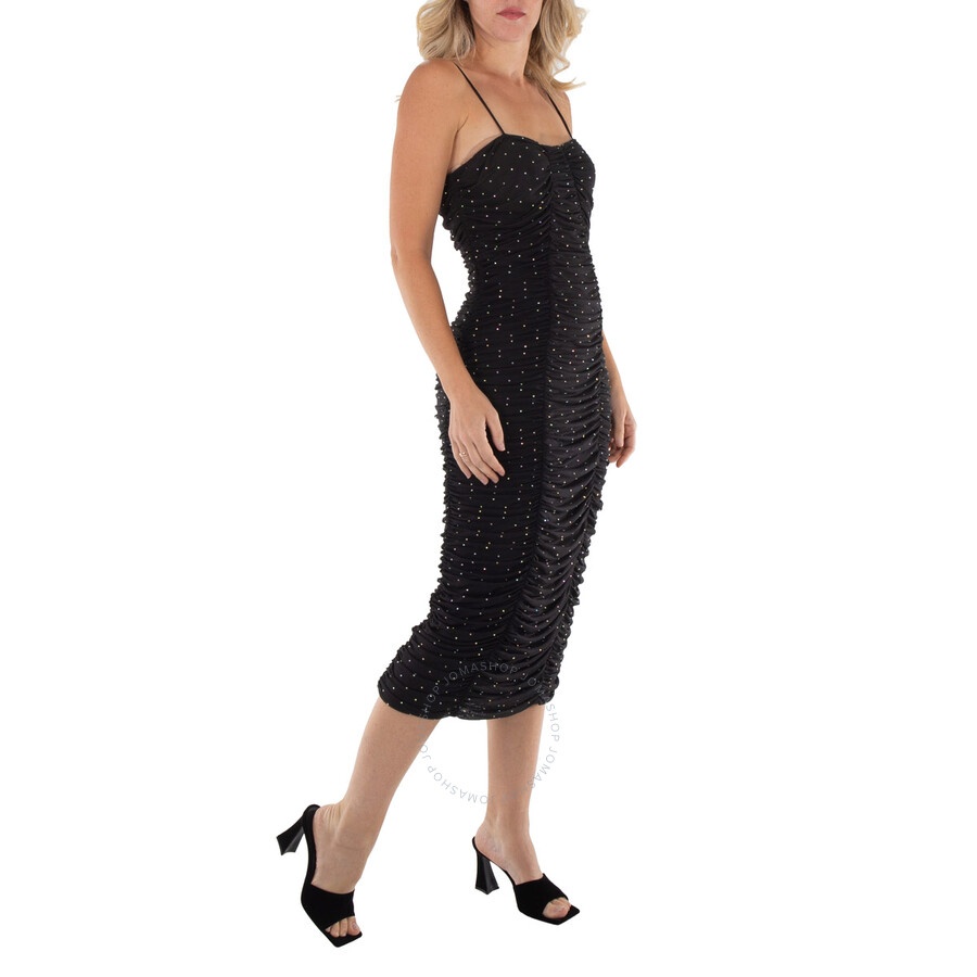 Rotate Ladies Dresses. Fashion category: Cocktail & Party Dresses. SKU: 111114100. Color: Black. Rotate Black Ruched Crystal Mesh Midi Dress. This mid-length midi dress features a stretch design with crystal embellishments, ruched detailing, a square neck, and spaghetti straps. Outer: Recycled Polyester 95%, Elastane 5%. Lining: Polyester 95%, Elastane 5%. GENERAL Color: Black INFORMATION Brand: Rotate Gender: Womens Model: 111114100 DETAILS Category: Dresses Apparel Type: Cocktail & Party Dresses ADDITIONAL INFO Jomashop Sku: -111114100BLACK Department: Clothing