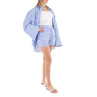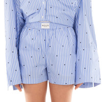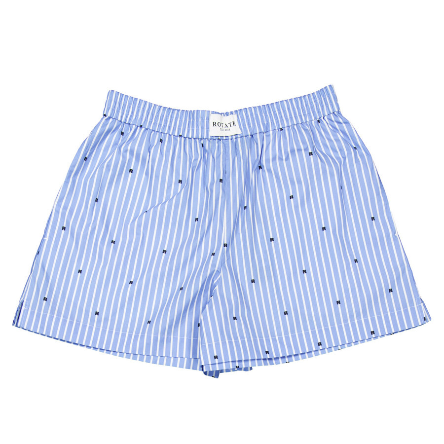 Rotate Ladies Bottoms. Fashion category: Shorts. SKU: 1124702975-BLUE LOGO STRIPE. Color: Blue Logo Stripe. Rotate Elasticated Stripe Shorts. Made from lightweight poplin fabric, this pair of shorts features a pull-on style with an elastic waistband, side seam pockets, and is finished with an allover logo pattern. 100% cotton. GENERAL Color: Blue Logo Stripe INFORMATION Brand: Rotate Gender: Womens Model: 1124702975-BLUE LOGO STRIPE DETAILS Category: Bottoms Apparel Type: Shorts Material: Cotton ADDITIONAL INFO Jomashop Sku: -02975BLUELOGOSTRIPE Department: Clothing