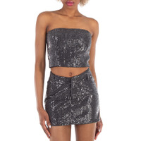 sequin-embellished strapless crop top