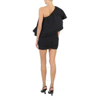 Rotate Ladies Black Taft Pleated One-Shoulder Mini Dress