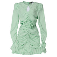 Rotate Ladies Dresses. Fashion category: Cocktail & Party Dresses. SKU: 1127802981-FENNEL FLOWER + GRAY. Color: Fennel Flower/Gray. Rotate Ladies Fennel Flower/Gray Mini Rose Belt Dress. A mini dress featuring a stretch design, patterned jacquard fabric, and a draped silhouette. It has a V-neck, long draped sleeves with ruffle cuffs, a faux-rose thin belt, and a ruffled hem. The dress is thigh-length and fastens with a concealed rear zip. Sustainable Viscose 100% GENERAL Color: Fennel Flower/Gray INFORMATION Brand: Rotate Gender: Womens Model: 1127802981-FENNEL FLOWER + GRAY DETAILS Category: Dresses Apparel Type: Cocktail & Party Dresses Material: Sustainable Viscose ADDITIONAL INFO Additional Info: Model is 5'8, wearing a size US 4 Jomashop Sku: -981FENNELFLOWERGRAY Department: Clothing