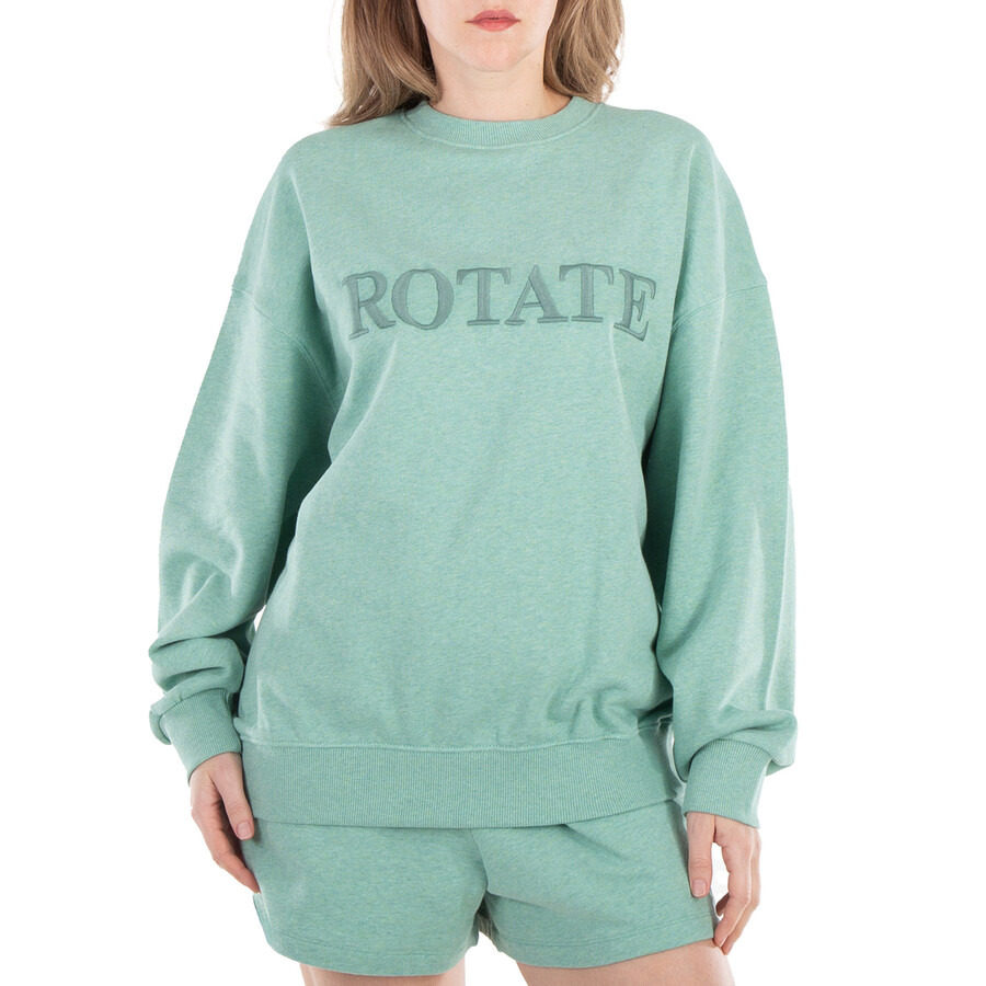 Rotate Ladies Tops. Fashion category: Hoodies & Sweatshirts. SKU: 1125031176-GRANITE GREEN. Color: Granite Green. Rotate Ladies Granite Green Logo-Embroidered Sweatshirt. Crafted from organic cotton, this sweatshirt features a jersey texture with a melange effect. It has a crew neck, an embroidered logo at the chest, and drop shoulders with long sleeves. The sweatshirt is finished with ribbed cuffs and hem, and a French terry lining for added comfort. Organic Cotton 100% Made in Italy. GENERAL Color: Granite Green INFORMATION Brand: Rotate Gender: Womens Model: 1125031176-GRANITE GREEN DETAILS Category: Tops Apparel Type: Hoodies & Sweatshirts Material: Organic Cotton ADDITIONAL INFO Jomashop Sku: -5031176GRANITEGREEN Department: Clothing