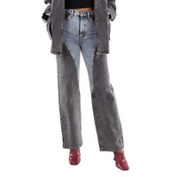 Rotate Ladies Bottoms. Fashion category: Jeans & Denim. SKU: 1128191603-MEDIUM BLUE DENIM. Color: Medium Blue Denim. Rotate Ladies Medium Blue Denim Straight Patchwork Jeans. Crafted from organic cotton, these pants feature a patchwork design with contrasting blue and dark grey denim for a modern twist. They include belt loops, a five-pocket design with hard rivet accents, a logo patch on the back, and a logo jacron on the patch. The pants have a straight cut, hidden closure, and button for a sleek finish. 100% COTTON (ORGANIC). GENERAL Color: Medium Blue Denim INFORMATION Brand: Rotate Gender: Womens Model: 1128191603-MEDIUM BLUE DENIM DETAILS Category: Bottoms Apparel Type: Jeans & Denim Material: Cotton (Organic) ADDITIONAL INFO Jomashop Sku: -1603MEDIUMBLUEDENIM Department: Clothing