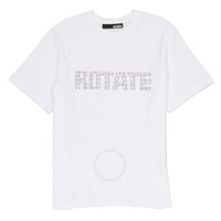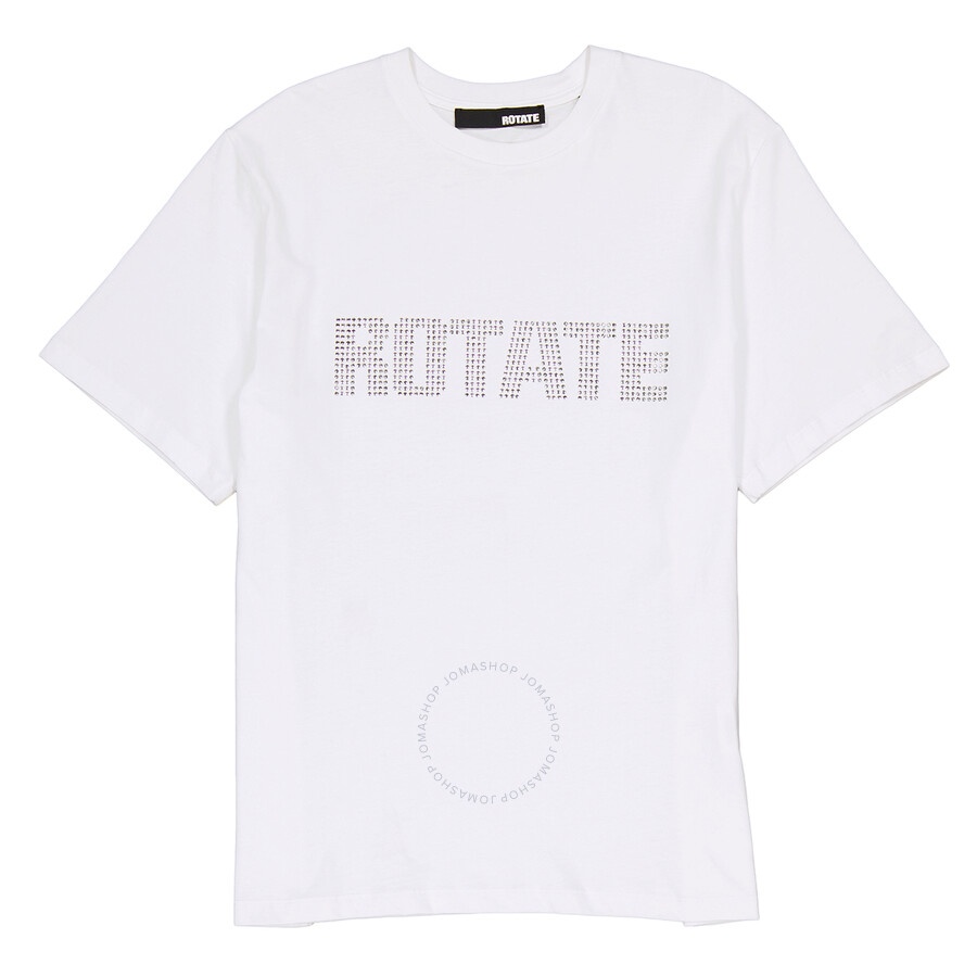 Rotate Ladies Tops. Fashion category: T-Shirts & Henleys. SKU: 700320400. Color: Bright White. Rotate Rhinestone Logo Aster Cotton T-Shirt. This t-shirt features a crew neck, short sleeves, and a straight hem, made from organic cotton with a rhinestone-embellished logo on the chest. 100% Organic Cotton. GENERAL Color: Bright White INFORMATION Brand: Rotate Gender: Womens Model: 700320400 DETAILS Category: Tops Apparel Type: T-Shirts & Henleys ADDITIONAL INFO Jomashop Sku: -00320400BRIGHTWHITE Department: Clothing
