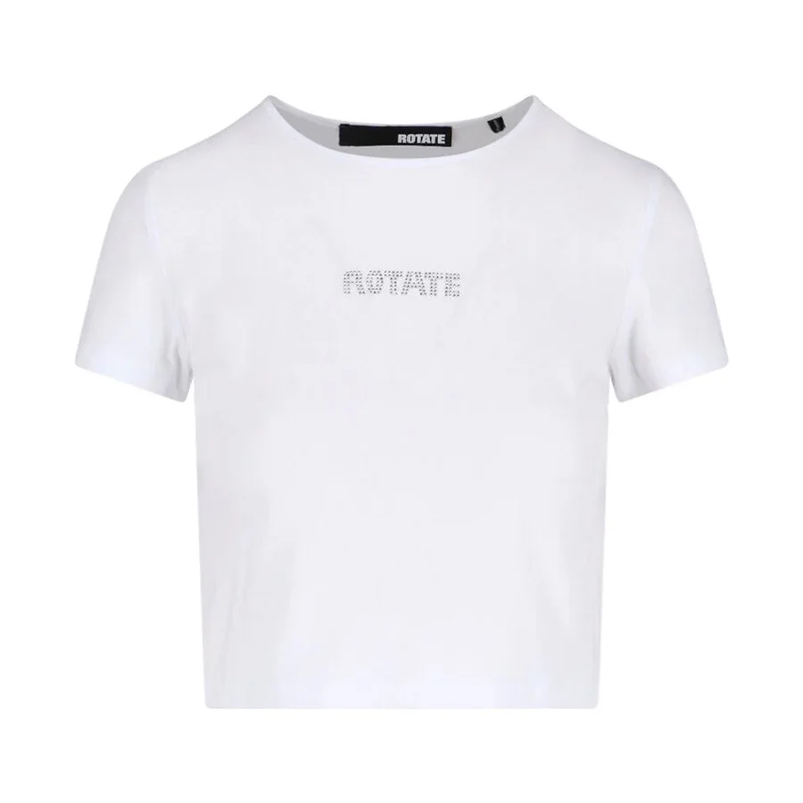 Rotate Ladies Tops. Fashion category: T-Shirts & Henleys. SKU: 111215400-BRIGHT WHITE. Color: Bright White. Rotate Womens Cropped Logo Tee. The Rotate Birger Christensen Cropped Logo Tee is made from a soft cotton-modal blend and features a cropped silhouette, short sleeves, and a round neckline. The front is adorned with a sparkling crystal logo for a stylish finish. Material: 48% Cotton, 48% Modal, 4% Spandex/elastane. GENERAL Size Info: 2 Clothing Size: Ladies Apparel Size: 2 Color: Bright White INFORMATION Brand: Rotate Gender: Womens Model: 111215400-BRIGHT WHITE DETAILS Category: Tops Apparel Type: T-Shirts & Henleys Material: Cotton Blend ADDITIONAL INFO UPC Code: 5715290204414 Jomashop Sku: Z-YYYNR Department: Clothing