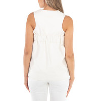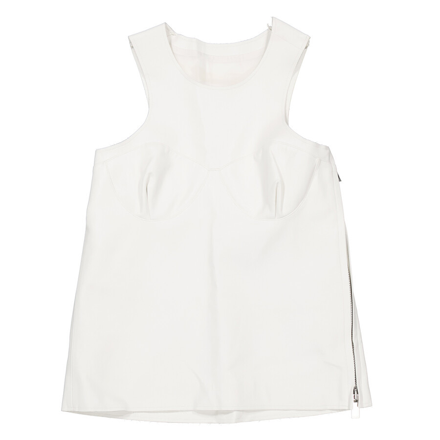 Sacai Ladies Tops. Fashion category: Shirts & Blouses. SKU: 23-06497-101. Color: White. Sacai Ladies White Faux Leather Tank Top. This tank top from Sacai is a sleek, minimalistic piece made of white fabric. It features a fitted design with subtle bust detailing, giving it structure without compromising simplicity. The sleeveless cut has a classic round neckline and is slightly loose around the waist. GENERAL Color: White INFORMATION Brand: Sacai Gender: Womens Model: 23-06497-101 DETAILS Category: Tops Apparel Type: Shirts & Blouses ADDITIONAL INFO Jomashop Sku: -2306497101N Department: Clothing