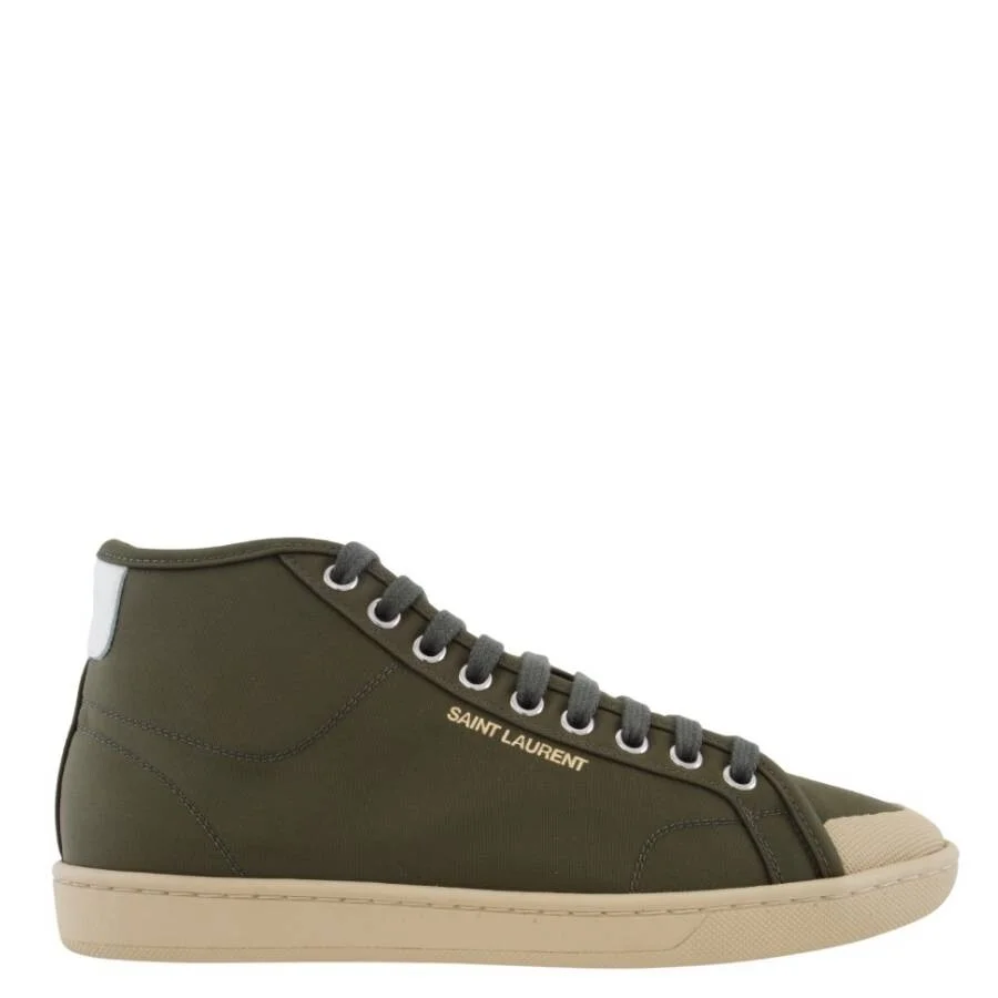 Saint Laurent Ladies Sneakers. SKU: 776268 AABPQ 2462. Color: Kiwi Cake/Cofee Whit. Saint Laurent Court Classic SL 39 Midtop Sneakers. Mid-top lace-up sneakers featuring a used-look rubber sole. Detailed with a gold Saint Laurent inscription along the outer side and an embossed Saint Laurent back tab for a signature finish. Material: 100% Nylon, 100% Calfskin Leather. Made in Italy. Please visit the brand website for sizing information. INFORMATION Brand: Saint Laurent Model: 776268 AABPQ 2462 Gender: Womens DETAILS Category: Sneakers Color: Kiwi Cake/Cofee Whit Shoe Vamp Style: Lace-up Sole Material: Rubber ADDITIONAL INFO Jomashop Sku: -776268AABPQ2462 Department: Shoes
