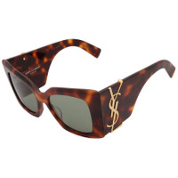 Saint Laurent Sunglasses. Series number: SL M119 BLAZE. Color code: 002. Shape: Butterfly. Lens Width: 54 mm. Lens Bridge: 18 mm. Arm Length: 135 mm. 100% UV protection. Non-Polarized. Frame Material: Acetate. Frame Color: Havana. Lenses Type: Green. Rim Style: Full-Rim. UPC/EAN code: 889652430263. Saint Laurent Green Butterfly Ladies Sunglasses SL M119 BLAZE 002 54. Manufacturer's Packaging Included. Packaging Size And Color May Vary. DETAILS Lens Width (mm): 54 Arm Length (mm): 135 mm Lens Bridge (mm): 18 Series Number: SL M119 BLAZE Frame Color: Havana Color Code: 002 Lens: Green UV Protection: 100% UV Protection Rim Style: Full-Rim Frame Shape: Butterfly Frame Material: Acetate GENERAL Size: 54 mm INFORMATION Brand: Saint Laurent Gender: Womens Model: SL M119 BLAZE 002 54 ADDITIONAL INFO UPC Code: 889652430263 Jomashop Sku: Z-UP8Q5 Department: Sunglasses