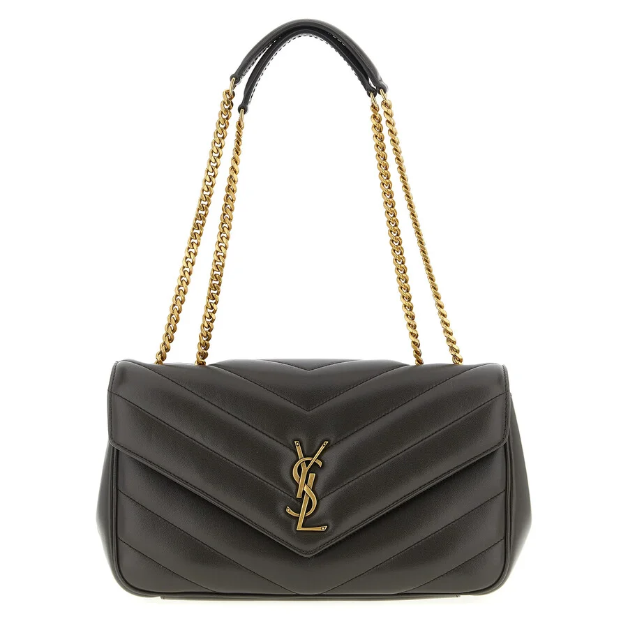 Saint Laurent Ladies Shoulder Bag. SKU: 801439AAEAX1997. Color: Brown. Saint Laurent loulou Medium Shoulder Bag. Loulou' medium shoulder bag in lambskin with chevron quilted stitching, magnetic flap closure with antiqued metal Cassandra logo on the front, cotton lining, sliding chain shoulder strap with leather protection, removable clutch bag, mirror. Composition: 100% lamb leather (Ovis aries) GENERAL Color: Brown INFORMATION Brand: Saint Laurent Gender: Womens Model: 801439AAEAX1997 ADDITIONAL INFO Jomashop Sku: Z-TRGFN Department: Bags Category: Shoulder Bag