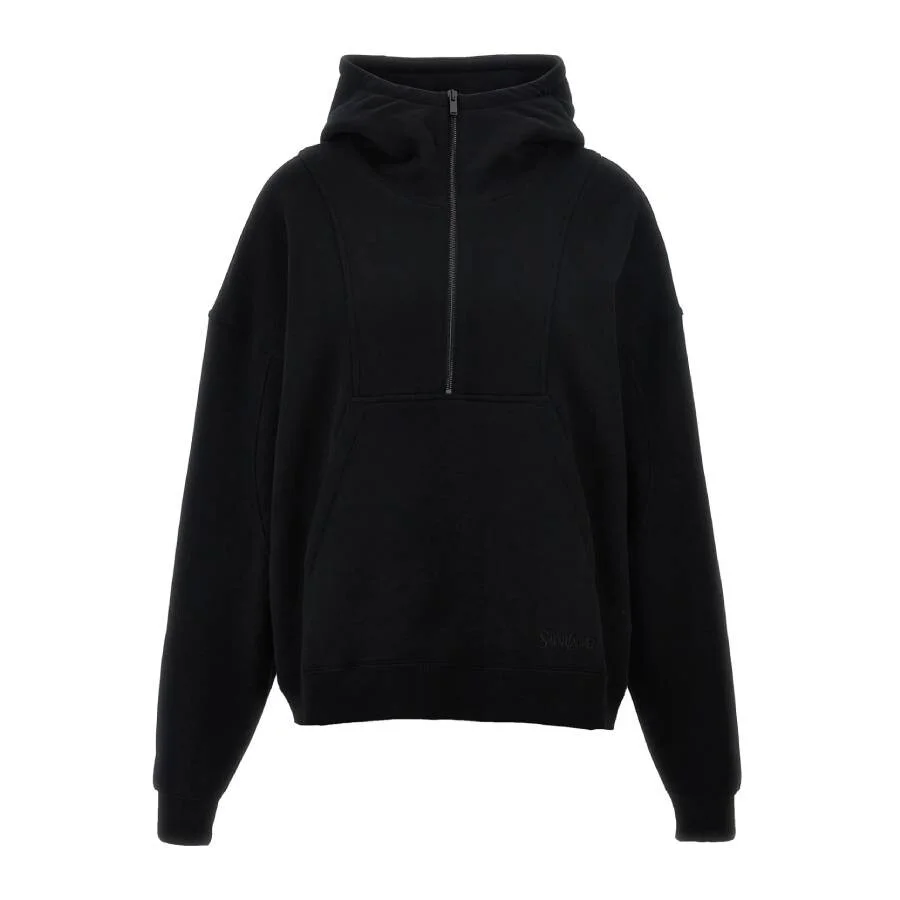 Saint Laurent Ladies Tops. Fashion category: Hoodies & Sweatshirts. SKU: 802133 Y36SW 1000. Color: Black. Saint Laurent Womens Black Camionneur Trucker Fleece Hoodie. The Camionneur cotton hoodie features a half-zip design, kangaroo pocket, long cuffed sleeves, and tone-on-tone logo embroidery. 100% cotton. Made in France. GENERAL Color: Black INFORMATION Brand: Saint Laurent Gender: Womens Model: 802133 Y36SW 1000 DETAILS Category: Tops Apparel Type: Hoodies & Sweatshirts Material: Cotton ADDITIONAL INFO Jomashop Sku: -802133Y36SW1000 Department: Clothing