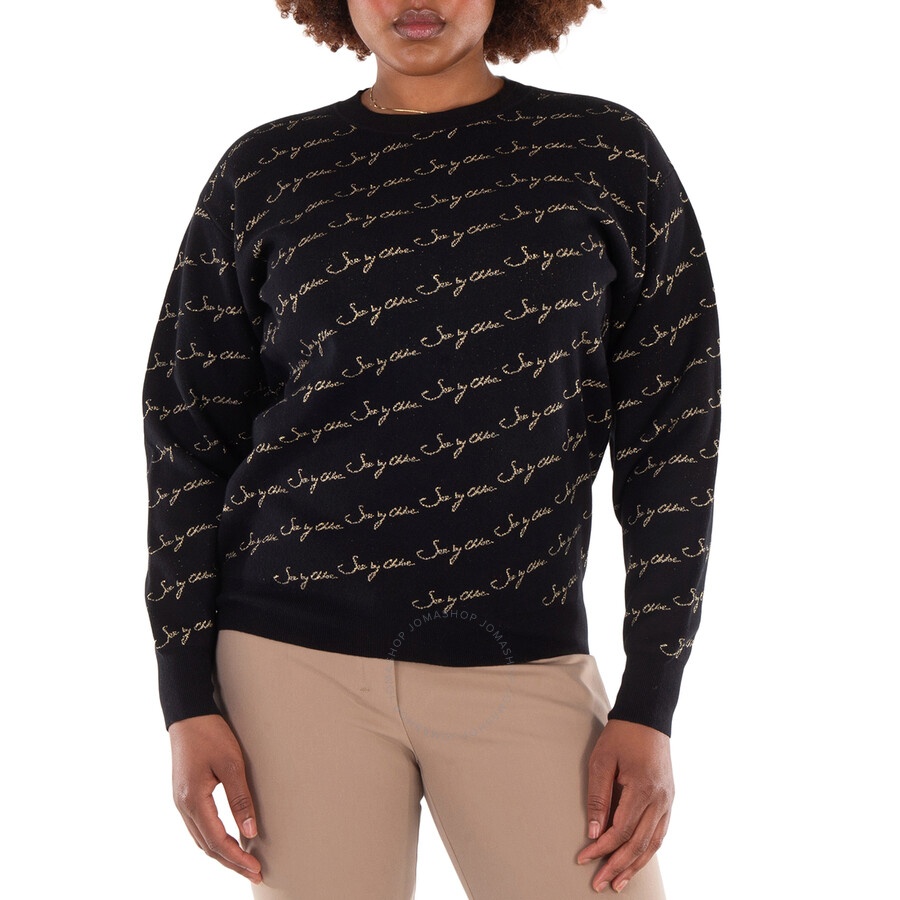 See By Chloe Ladies Tops. Fashion category: Cardigans & Sweaters. SKU: CHS19WMP07550. Color: Black. See By Chloe Metallic Logo Knit Sweater. A cotton-blend metallic logo knit sweater showcases a ribbed round neckline, along with ribbed hem and cuffs. GENERAL Color: Black INFORMATION Brand: See By Chloe Gender: Womens Model: CHS19WMP07550 DETAILS Category: Tops Apparel Type: Cardigans & Sweaters ADDITIONAL INFO Jomashop Sku: -CHS19WMP07550 Department: Clothing