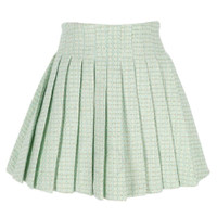 Mint Boucle Pleated Mini Skirt