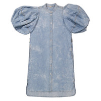 Stella Mccartney Crinkle Blue Denim Puff Sleeve Dress