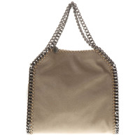 Made with eco-sustainable materials-Iconic silver diamond cutting chain-Lining with monogrammed pattern-Magnetic button closure-Made in Italy Stella McCartney Ladies Tote. Falabella series. SKU: 371223W91329300. Material: Polyester. Occasion: Casual. Color: Beige. Stella McCartney Falabella Mini Beige Tote 371223W91329300. Stella McCartney shimmery faux-leather (polyester) tote. Signature whipstitching and ruthenium curb-chain trim. Double top handles with logo disc charm. Dipped top with snap closure. Fabric lining and interior pocket. 10"H x 9"W x 3 1/2"D. Made in Italy. GENERAL Brand Type: Designer Color: Beige Collection Name: Falabella INFORMATION Brand: Stella McCartney Series: Falabella Gender: Womens Model: 371223W91329300 DETAILS Material: Polyester Occasion: Casual DIMENSIONS Size: Small ADDITIONAL INFO UPC Code: 3664160899774 Jomashop Sku: Y-51763 Additional Info: UNI Department: Bags Category: Tote Bags