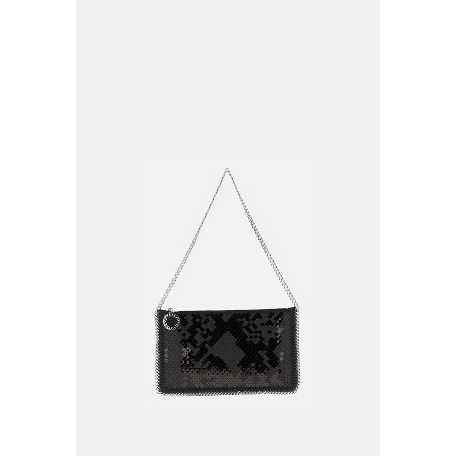 Stella McCartney Ladies Shoulder Bag. SKU: 7P0076WP06371000. Color: Black. Stella Mccartney Falabella Pochette With Sequins Embroidery. Falabella shoulder bag with all-over sequins in recycled PVC-free polyester. Python pattern, iconic diamond-effect chain in recycled brass and aluminum with ruthenium finish. Shoulder strap. One main compartment. Zip closure. Medallion with engraved logo in ruthenium. Monogram lining in recycled polyester. Color: black. Handmade in Italy. Composition: 100% Polyester. GENERAL Brand Type: Designer Color: Black INFORMATION Brand: Stella McCartney Gender: Womens Model: 7P0076WP06371000 ADDITIONAL INFO UPC Code: 3667024206336 Jomashop Sku: Z-U7P3B Department: Bags Category: Shoulder Bag