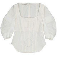 Stella McCartney Ladies Tops. SKU: 603061 SIA03 9200. Color: White. Stella Mccartney Ladies Fiona Puff-sleeve Blouse. Made from a cotton-linen blend and features squared neckline, three-quarter puffed sleeves, concealed rear zip fastening, ribbed cuffs and curved hem. Material: 40% Polyamide, 36% Organic Cotton, 24% Flax. Dry clean. GENERAL Color: White INFORMATION Brand: Stella Mccartney Gender: Womens Model: 603061 SIA03 9200 DETAILS Category: Tops Apparel Type: Shirts & Blouses ADDITIONAL INFO Jomashop Sku: -603061SIA039200 Department: Apparel