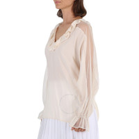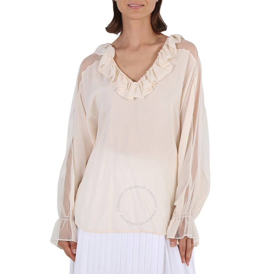 Stella McCartney Ladies Knit Tops Tops White Ruffle Top Cut Shld, Brand Size 40 (US Size 6)