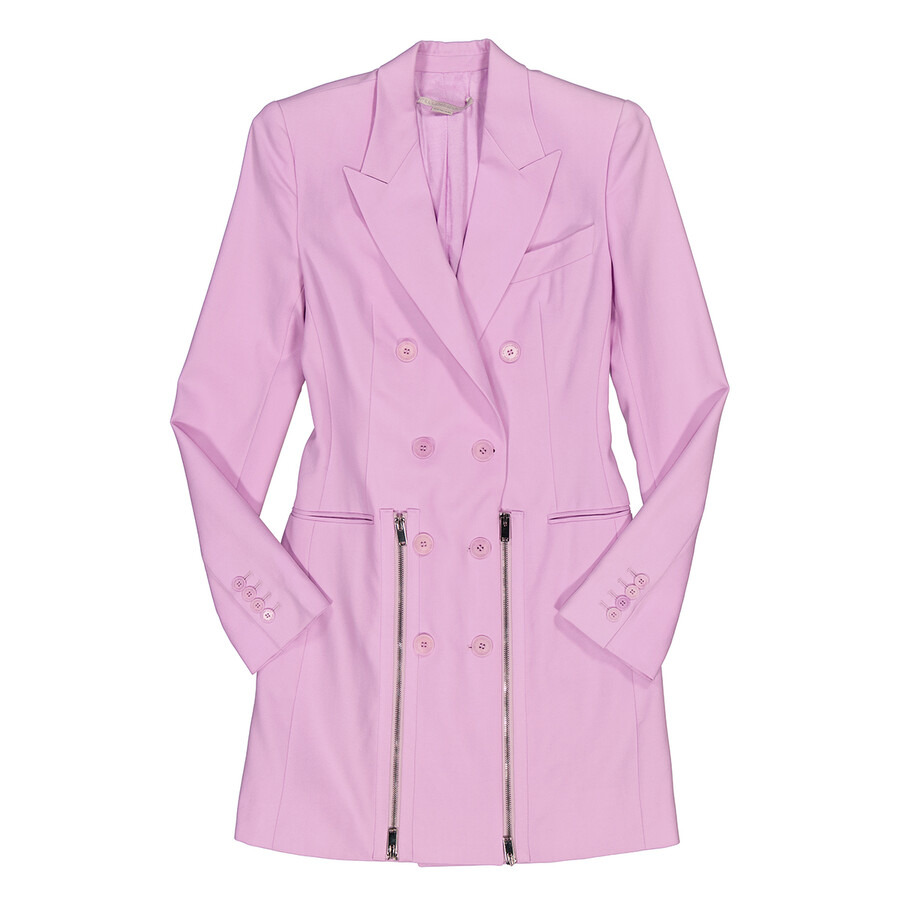 Stella McCartney Ladies Dresses. Fashion category: Cocktail & Party Dresses. SKU: 604213SSA3656015. Color: Purple. Stella McCartney Ladies Purple Double Breasted Wool Blazer Dress. A double-breasted wool blazer dress featuring peak lapels, a classic collar, two front slip pockets, and two two-way zippers at the bottom. It has long sleeves and a fitted silhouette. GENERAL Color: Purple INFORMATION Brand: Stella Mccartney Gender: Womens Model: 604213SSA3656015 DETAILS Category: Dresses Apparel Type: Cocktail & Party Dresses ADDITIONAL INFO Jomashop Sku: -604213SSA3656015 Department: Apparel