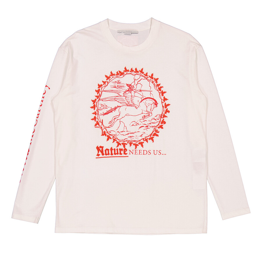 Stella McCartney Ladies Tops. Fashion category: T-Shirts & Henleys. SKU: 6J01613SPY209500. Color: White. Stella McCartney Logo Printed Long-Sleeve T-Shirt. This t-shirt features a crew neckline, long sleeves, graphic print on chest, a straight hem and a relaxed fit. GENERAL Color: White INFORMATION Brand: Stella Mccartney Gender: Womens Model: 6J01613SPY209500 DETAILS Category: Tops Apparel Type: T-Shirts & Henleys ADDITIONAL INFO Jomashop Sku: -6J01613SPY209500 Department: Clothing