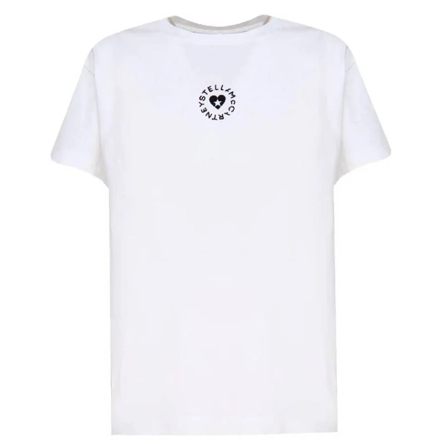 Stella Mccartney Ladies Tops. Fashion category: T-Shirts & Henleys. SKU: 6J02733SPY53-9000. Color: Pure White. Stella Mccartney Lovestruck Logo Cotton T-Shirt. This t-shirt is made from soft organic cotton jersey and features a classic crew neck with short sleeves. The chest is adorned with a playful black Stella star and heart motif alongside a black circular Stella McCartney logo. 100% organic cotton. Made in Portugal. GENERAL Brand Type: Designer Color: Pure White INFORMATION Brand: Stella McCartney Gender: Womens Model: 6J02733SPY53-9000 DETAILS Category: Tops Apparel Type: T-Shirts & Henleys Material: Cotton ADDITIONAL INFO Jomashop Sku: -6J02733SPY539000 Department: Clothing