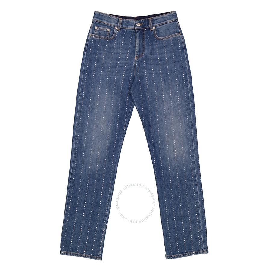Stella Mccartney Ladies Bottoms. Fashion category: Jeans & Denim. SKU: 6D0029 3SOH95-4480. Color: Vintage Dark. Stella Mccartney Rhinestone-Embellished Straight Leg Denim Jeans. Stella McCartney denim jeans showcase rhinestone embellishments, a straight hem, mid-rise design, front button and zip fastening, classic five pockets, distressed detailing, and a logo patch at the rear. 100% Cotton. Made in Italy. GENERAL Color: Vintage Dark INFORMATION Brand: Stella Mccartney Gender: Womens Model: 6D0029 3SOH95-4480 DETAILS Category: Bottoms Apparel Type: Jeans & Denim Material: Cotton ADDITIONAL INFO Jomashop Sku: -6D00293SOH954480 Department: Apparel