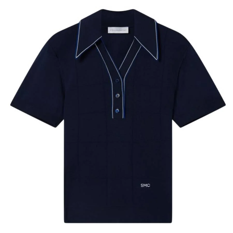 Stella Mccartney Ladies Tops. Fashion category: Polo Shirts. SKU: 6K10283S2597-4205. Color: Sailor Blue. Stella Mccartney Technical Knit Short Sleeve Polo Shirt. This polo shirt features a stylish V-neck design with a pointed collar and striped detailing for a modern touch. It has short sleeves and a button-down front with a secure button fastening. The elasticated ribbed trims provide a comfortable and flexible fit, completing the look with a polished finish. 100% Polypropylene. Made in Italy. GENERAL Brand Type: Designer Color: Sailor Blue INFORMATION Brand: Stella McCartney Gender: Womens Model: 6K10283S2597-4205 DETAILS Category: Tops Apparel Type: Polo Shirts Material: Polypropylene ADDITIONAL INFO Jomashop Sku: -6K10283S25974205 Department: Clothing