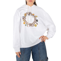 Stella McCartney Ladies Tops. Fashion category: Hoodies & Sweatshirts. SKU: 6J01573SPX809000. Color: White. Stella McCartney White Cotton Bracelet-Print Hooded Sweatshirt. This sweatshirt, crafted entirely from cotton, features a graphic print on the front, a drawstring hood, drop shoulders, long sleeves, and ribbed cuffs and hem. GENERAL Color: White INFORMATION Brand: Stella Mccartney Gender: Womens Model: 6J01573SPX809000 DETAILS Category: Tops Apparel Type: Hoodies & Sweatshirts Material: Cotton ADDITIONAL INFO Jomashop Sku: -6J01573SPX809000 Department: Apparel