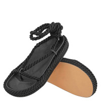 Studio Amelia Ladies Black Tether Rope Ankle-Wrap Flat Sandals
