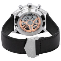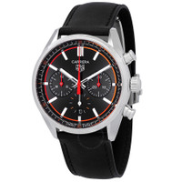 Silver-tone stainless steel case with a black leather strap. Fixed silver-tone stainless steel bezel. Black dial with silver-tone hands and index hour markers. Minute markers around the outer rim. Dial Type: Analog. Luminescent hands and markers. Date display at the 6 o'clock position. Chronograph - three sub-dials displaying: 60 second, 30 minute and 12 hour. Tag Heuer Calibre 02 Automatic movement, containing 33 Jewels, composed of 168 parts, bitting at 28800 vph, and has a power reserve of approximately 80 hours. Scratch resistant sapphire crystal. Transparent see through case back. Round case shape, case size: 42 mm. Deployment with push button release clasp. Water resistant at 100 meters / 330 feet. Functions: chronograph, column wheel, date, hour, minute, small second. Additional Info: original box, international warranty card, manual (complete accessories). Carrera Series. Luxury watch style. Watch label: Swiss Made. Tag Heuer Carrera Chronograph Automatic Black Dial Men's Watch CBN201C.FC6542. INFORMATION Brand: Tag Heuer Series: Carrera Collection Name: Carrera Gender: Mens Model: CBN201C.FC6542 Watch Label: Swiss Made Movement: Automatic Engine: Tag Heuer Calibre 02 Power Reserve: 80 hours CASE Case Size: 42 mm Case Material: Stainless Steel Case Shape: Round Case Back: Transparent See Through BAND Band Material: Leather Band Type: Strap Band Color: Black Clasp: Deployment with Push Button Release DIAL Dial Color: Black Type: Analog Crystal: Scratch Resistant Sapphire Hands: Silver-tone Dial Markers: Index Second Markers: Minute Markers around the outer rim Sub Dials: Three - 60 Second, 30 Minute and 12 Hour Luminiscence: Hands and Markers Bezel: Fixed Bezel Color: Silver-tone Bezel Material: Stainless Steel FEATURES Water Resistance: 100 meters / 330 feet Calendar: Date display at the 6 o'clock position Functions: Chronograph, Column Wheel, Date, Hour, Minute, Small Second Watch Features: Chronograph, Stainless Steel, Leather, Analog ADDITIONAL INFO Watch Style: Luxury Warranty: 2 Year Jomashop Warranty Additional Info: Original Box, International Warranty Card, Manual (Complete Accessories) Jomashop Sku: THCBN201CFC6542 Department: Watches Category: Watches