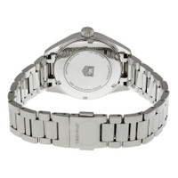 Silver-tone stainless steel case and bracelet. Fixed silver-tone stainless steel bezel. White dial with silver-tone hands and diamond hour markers. Minute markers around the outer rim. Dial Type: Analog. Date display at the 3 o'clock position. Scratch resistant sapphire crystal. Pull / push crown. Solid case back. Round case shape, case size: 32 mm, case thickness: 10 mm. Band length: 7 inches. Deployment with double push button release clasp. Water resistant at 30 meters / 100 feet. Functions: date, hour, minute. Carrera Series. Luxury watch style. Watch label: Swiss Made. Item Variations: WAR1314 BA0778, WAR1314-BA0778, WAR1314/BA0778, WAR1314BA0778. Tag Heuer Carrera White Dial Ladies Watch WAR1314.BA0778. INFORMATION Brand: Tag Heuer Series: Carrera Collection Name: Carrera Gender: Womens Model: WAR1314.BA0778 Watch Label: Swiss Made Movement: Quartz Engine: Sellita Calibre SW1000 Power Reserve: 40 hours CASE Case Size: 32 mm Case Thickness: 10 mm Case Material: Stainless Steel Case Shape: Round Case Back: Solid BAND Band Material: Stainless Steel Band Type: Bracelet Band Color: Silver-tone Band Length: 7 inches Clasp: Deployment with Double Push Button Release DIAL Dial Color: White Type: Analog Crystal: Scratch Resistant Sapphire Hands: Silver-tone Dial Markers: Diamond Second Markers: Minute Markers around the outer rim Bezel: Fixed Bezel Color: Silver-tone Bezel Material: Stainless Steel Crown: Pull / Push FEATURES Water Resistance: 30 meters / 100 feet Calendar: Date display at the 3 o'clock position Functions: Date, Hour, Minute Watch Features: Diamond, Stainless Steel, Analog ADDITIONAL INFO Watch Style: Luxury Warranty: 2 Year Jomashop Warranty UPC Code: 7612533115156 Jomashop Sku: THWAR1314BA0778 Item Variation: WAR1314 BA0778, WAR1314-BA0778, WAR1314/BA0778, WAR1314BA0778 Department: Watches Category: Watches
