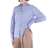 The Attico Ladies Tops. Fashion category: Shirts & Blouses. SKU: 242WCH14-BLUE NAVY/SKY. Color: White. The Attico Eliza Logo Poplin Shirt. This cotton poplin shirt features an all-over striped pattern with logo embroidery, a classic collar, long sleeves with buttoned cuffs, and cut-out detailing at the hem. 100% Cotton. Made in Italy. GENERAL Color: White INFORMATION Brand: The Attico Gender: Womens Model: 242WCH14-BLUE NAVY/SKY DETAILS Category: Tops Apparel Type: Shirts & Blouses Material: Cotton ADDITIONAL INFO Jomashop Sku: -242WCH14BLUENAVYSKY Department: Clothing