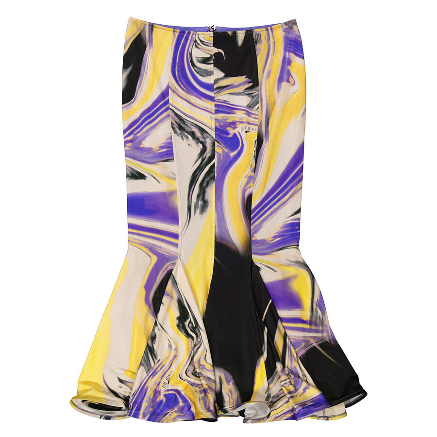 The Attico Ladies Bottoms. Fashion category: Skirts. SKU: 237WCS164 E082P 512. Color: Lavander/Sunflower/Ivory. The Attico Ladies Lavander / Sunflower / Ivory Abstract-Print Flared Midi Skirt. The midi skirt is designed for both comfort and style, featuring a stretch design that allows for a flexible fit. It showcases an eye-catching abstract pattern print and a high waist that flatters the figure. The skirt includes a concealed rear zip fastening along with a hook and eye closure for a seamless look. The flared hem adds a touch of elegance and movement to the skirt, making it a versatile and fashionable piece for various occasions. Made in Italy. GENERAL Color: Lavander/Sunflower/Ivory INFORMATION Brand: The Attico Gender: Womens Model: 237WCS164 E082P 512 DETAILS Category: Bottoms Apparel Type: Skirts ADDITIONAL INFO Jomashop Sku: -237WCS164E082P512 Department: Apparel