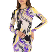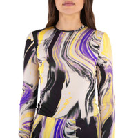 The Attico Ladies Tops. Fashion category: T-Shirts & Henleys. SKU: 237WCT208 E082P 512. Color: Lavander/Sunflower/Ivory. The Attico Lavander/Sunflower/Ivory Marbled-Pattern T-Shirt. Crafted from a stretch fabric, this t-shirt features a multicolor marbled print, a crew neck, long sleeves, and a straight hem. Made in Italy. GENERAL Color: Lavander/Sunflower/Ivory INFORMATION Brand: The Attico Gender: Womens Model: 237WCT208 E082P 512 DETAILS Category: Tops Apparel Type: T-Shirts & Henleys ADDITIONAL INFO Jomashop Sku: -237WCT208E082P512 Department: Apparel