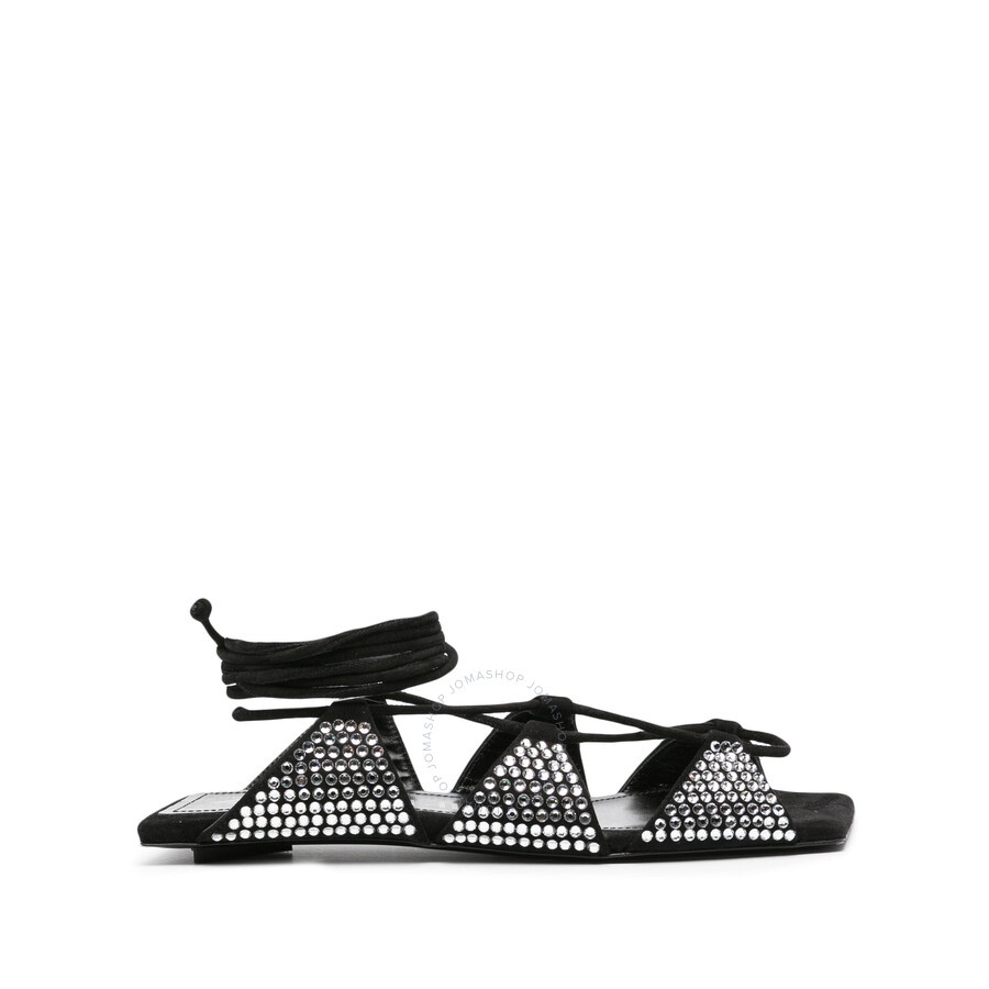 The Attico Ladies Flats. SKU: 241WS794-BLACK/CRYSTAL. Color: Grey. The Attico Tatc Crystal-Embellished Renee Flat Sandal. This pair of Renee Sandals features a square open toe and open back, with a self-tie fastening. They have a branded leather insole, a low stacked triangle heel, and a leather sole, finished with glass crystal embellishments. Made in Italy. Please visit the brand website for sizing information. INFORMATION Brand: The Attico Model: 241WS794-BLACK/CRYSTAL Gender: Womens DETAILS Category: Flats Shoe Style: Ankle Wrap Shoe Style: Ankle Wrap Color: Grey Shoe Vamp Style: Slip-on Sole Material: Leather ADDITIONAL INFO Jomashop Sku: -41WS794BLACKCRYSTAL Department: Shoes