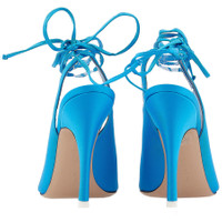 The Attico Ladies Heels. SKU: 211WS032 V015 014. Color: Turquoise. The Attico Turquoise Venus Slingback 105 Pumps. The stiletto pumps from The Attico, crafted from satin, boast a pointed toe, an open heel, and a leather sole. Please visit the brand website for sizing information. INFORMATION Brand: The Attico Model: 211WS032 V015 014 Gender: Womens DETAILS Category: Heels Shoe Style: Slingbacks Shoe Style: Slingbacks Color: Turquoise Shoe Vamp Style: Slip-on Sole Material: Leather ADDITIONAL INFO Jomashop Sku: -211WS032V015014 Department: Shoes