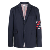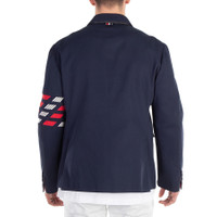 Thom Browne Men's Outerwear. Fashion category: Blazers. SKU: MJU490C F0572 960. Color: Rwbwht. Thom Browne 4-Bar Classic Sport Coat. This cotton twill blazer features a notched lapel, button closure, welt chest pocket, flap pockets, striped sleeves, four-button surgeon's cuffs, a tricolor grosgrain flag at the back collar, twin vents at the back, a detachable suspender strap on the interior, and a full plain-woven cupro lining. Self: 100% Cotton; Combo1: 56% Silk, 44% Cotton; Lining:100% Cupro. INFORMATION Brand: Thom Browne Gender: Mens Model: MJU490C F0572 960 DETAILS Category: Outerwear Apparel Type: Blazers Material: Cotton, Silk ADDITIONAL INFO Jomashop Sku: -MJU490CF0572960 Department: Clothing