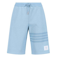 Thom Browne Men's Tops. Fashion category: Shorts. SKU: MJQ161A J0051 480. Color: Light Blue. Thom Browne 4-Bar Double Face Knit Sweatshorts. These sweatshorts feature a drawstring waistband with silver-tone aglets, the brand's iconic 4-Bar stripe detailing inspired by varsity stripes, slip side pockets, a name tag applique above the left hem, and a signature striped grosgrain loop tab. 100% Cotton. Made in Japan. INFORMATION Brand: Thom Browne Gender: Mens Model: MJQ161A J0051 480 DETAILS Category: Tops Apparel Type: Shorts Material: Cotton ADDITIONAL INFO Jomashop Sku: -MJQ161AJ0051480 Department: Clothing