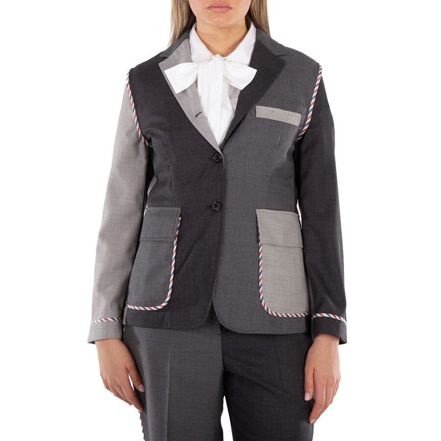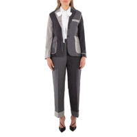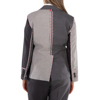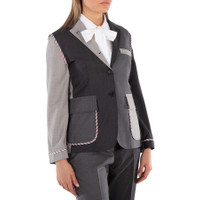 Thom Browne Ladies Outerwear. Fashion category: Coats & Jackets. SKU: FBC900F 00626 025. Thom Browne Classic Funmix Twill Sportcoat. Crafted from fine twill fabric, this sport coat features a front button closure, two flap pockets, and a single chest pocket. It includes buttoned cuffs, a single vented back, and an interior name tag. The coat also has a signature striped grosgrain loop tab, pleated details, and a flared design. 100% Wool. Made in Italy. INFORMATION Brand: Thom Browne Gender: Womens Model: FBC900F 00626 025 DETAILS Category: Outerwear Apparel Type: Coats & Jackets Material: Wool ADDITIONAL INFO Jomashop Sku: -FBC900F00626025 Department: Clothing