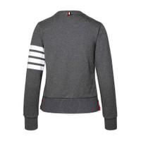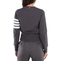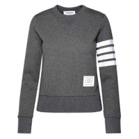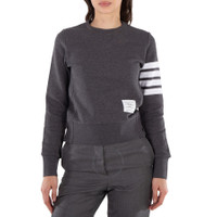 Thom Browne Ladies Tops. Fashion category: Hoodies & Sweatshirts. SKU: FJT002A 00535 025. Color: Dark Grey. Crafted from classic loopback cotton in dark grey, this Thom Browne sweatshirt blends comfort with the brand’s signature preppy aesthetic. The design features a bold 4-bar stripe detail in white on the left sleeve, complemented by a name tag applique at the front. Ribbed cuffs and hem provide a clean and structured fit, while the iconic striped grosgrain loop tab at the back of the neck adds a signature finish. 100% Cotton. Made in Japan. GENERAL Color: Dark Grey INFORMATION Brand: Thom Browne Gender: Womens Model: FJT002A 00535 025 DETAILS Category: Tops Apparel Type: Hoodies & Sweatshirts Material: Cotton ADDITIONAL INFO Jomashop Sku: -FJT002A00535025 Department: Clothing