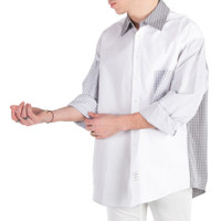 Thom Browne Men's Tops. Fashion category: Casual Button-Downs. SKU: MWL381F-F0313-100. Color: White. This patchwork cotton shirt blends shades of cotton with Thom Browne's signature emblems, accented by a charming gingham print to celebrate the spring season. Designed with a front button closure, a patch chest pocket, and a name tag applique above the hem, it also features a pleated back yoke with a locker loop and the signature striped grosgrain loop tab for a refined finish. 100% Cotton. Made in Italy. GENERAL Color: White INFORMATION Brand: Thom Browne Gender: Mens Model: MWL381F-F0313-100 DETAILS Category: Tops Apparel Type: Casual Button-Downs Material: Cotton ADDITIONAL INFO Jomashop Sku: -MWL381FF0313100 Department: Clothing