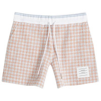 Thom Browne Ladies Bottoms. Fashion category: Shorts. SKU: FJQ107A J0113 825. Thom Browne Ladies Tweed Summer Shorts. Crafted from fine tweed fabric, these shorts feature a drawstring waistband with silver-tone aglets, slip side pockets, and a name tag applique above the left hem. They are finished with an allover stripe pattern and the signature striped grosgrain loop tab. 91% Cotton, 8% Polyamide, 1% Elastane. Made in Italy. GENERAL Color: Orange INFORMATION Brand: Thom Browne Gender: Womens Model: FJQ107A J0113 825 DETAILS Category: Bottoms Apparel Type: Shorts Material: Cotton, Elastane, Polyamide ADDITIONAL INFO Jomashop Sku: -FJQ107AJ0113825 Department: Clothing