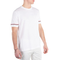 Thom Browne Men's Tops. Fashion category: T-Shirts & Henleys. SKU: MJS247A J0129 100. Color: White. Thom Browne Lightweight Striped Cuff Cotton T-Shirt. The cotton T-shirt showcases a bound crew neckline, a name tag applique near the hem, buttoned side vents with signature grosgrain accents, grosgrain-trimmed sleeves, and a distinctive striped grosgrain loop tab. 100% Cotton. Made in Italy. INFORMATION Brand: Thom Browne Gender: Mens Model: MJS247A J0129 100 DETAILS Category: Tops Apparel Type: T-Shirts & Henleys Material: Cotton ADDITIONAL INFO Jomashop Sku: -MJS247AJ0129100 Department: Clothing