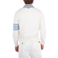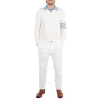 Thom Browne Men's Tops. Fashion category: Cardigans & Sweaters. SKU: MKP115A Y3036 100. Color: White. Thom Browne Men's Jersey 4-Bar V Neck Polo Pullover in White. This cotton blend pullover sweater features a V-neckline, a partial front button placket, and 4-bar detailing. It is designed with buttoned side vents and cuffs, both trimmed with signature striped grosgrain. The sweater is finished with a signature striped grosgrain loop tab. 99% Cotton, 1% Polyamide. Made in Italy. GENERAL Color: White INFORMATION Brand: Thom Browne Gender: Mens Model: MKP115A Y3036 100 DETAILS Category: Tops Apparel Type: Cardigans & Sweaters Material: Cotton, Polyamide ADDITIONAL INFO Jomashop Sku: -MKP115AY3036100 Department: Clothing