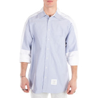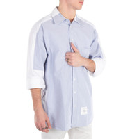 Thom Browne Men's Tops. Fashion category: Casual Button-Downs. SKU: MWL397A F0313 100. Color: Sky Blue/White. This limited-edition Thom Browne shirt combines impeccable craftsmanship with fine cotton fabric and distinctive emblems, making it a must-have for your spring wardrobe. Crafted in a blend of seasonal sky blue and white hues, it features a front button closure, an oversized fit, and a single patch pocket. Additional details include a name tag applique above the hem, a seamed back yoke with a locker loop, and the signature striped grosgrain loop tab for a refined finish. 100% Cotton. Made in Italy. GENERAL Color: Sky Blue/White INFORMATION Brand: Thom Browne Gender: Mens Model: MWL397A F0313 100 DETAILS Category: Tops Apparel Type: Casual Button-Downs Material: Cotton ADDITIONAL INFO Jomashop Sku: -MWL397AF0313100 Department: Clothing