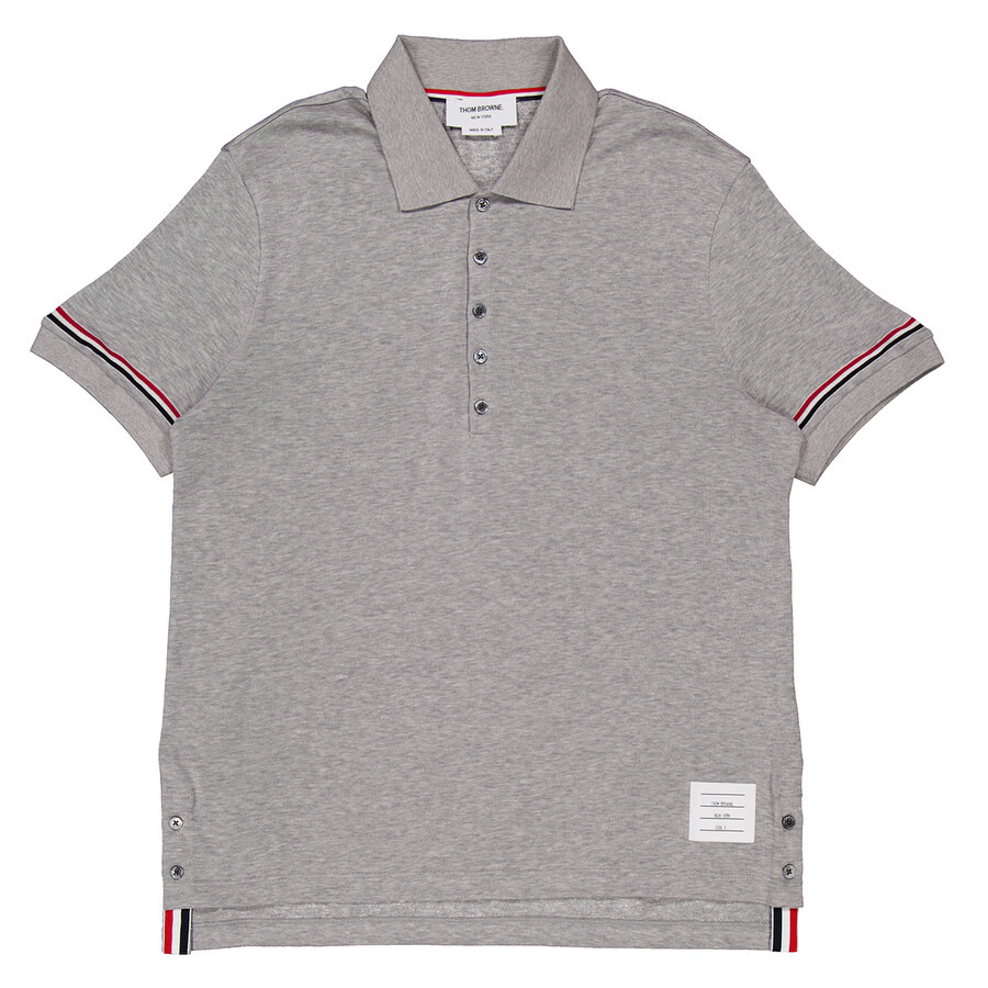 Thom Browne Men's Tops. Fashion category: Polo Shirts. SKU: MJP193A J0129 035. Color: Med Grey. Thom Browne Short Sleeve Cotton Polo Shirt. This cotton polo shirt features a spread collar, a partial front button placket, buttoned side vents with grosgrain trim, a name tag applique above the hem, and a signature striped grosgrain loop tab. 100% Cotton. Made in Italy. INFORMATION Brand: Thom Browne Gender: Mens Model: MJP193A J0129 035 DETAILS Category: Tops Apparel Type: Polo Shirts Material: Cotton ADDITIONAL INFO Jomashop Sku: -MJP193AJ0129035 Department: Clothing