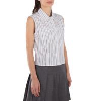 Thom Browne Ladies Tops. Fashion category: Shirts & Blouses. SKU: FLL173A F0620 035. Color: Med Grey. Thom Browne Striped Cotton-Poplin Sleeveless Shirt. This cropped shirt, made from crisp cotton-poplin, features uniform stripes, a rounded collar, and subtle inverted pleats at the waist for a cinched silhouette, with button fastenings through the front. 100% cotton. Made in Italy. INFORMATION Brand: Thom Browne Gender: Womens Model: FLL173A F0620 035 DETAILS Category: Tops Apparel Type: Shirts & Blouses Material: Cotton ADDITIONAL INFO Jomashop Sku: -FLL173AF0620035 Department: Clothing