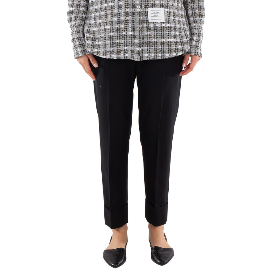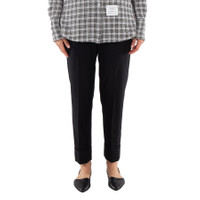 Thom Browne Ladies Bottoms. Fashion category: Pants & Leggings. SKU: FTC485A 00626 001. Color: Black. The Super 120's Twill Low Rise Cigarette Trouser showcases Thom Browne's distinguished tailoring with a classic shortened hem. Featuring a tab front closure, slip side pockets, button-fastening back welt pockets, and the signature striped grosgrain loop tab, this piece embodies timeless sophistication. 100% Wool; Lining:100% Silk. Made in Italy. GENERAL Color: Black INFORMATION Brand: Thom Browne Gender: Womens Model: FTC485A 00626 001 DETAILS Category: Bottoms Apparel Type: Pants & Leggings Material: Silk, Wool ADDITIONAL INFO Jomashop Sku: -FTC485A00626001 Department: Clothing