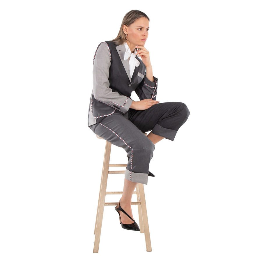 Thom Browne Ladies Bottoms. Fashion category: Pants & Leggings. SKU: FTC489F 00626 025. Thom Browne Two-Tone Straight Trousers. A pair of wool trousers featuring a two-tone design with an RWB stripe. They include a concealed front fastening, two side inset pockets, two rear jetted pockets, and turn-up cuffs. Wool 100% Made in Italy. INFORMATION Brand: Thom Browne Gender: Womens Model: FTC489F 00626 025 DETAILS Category: Bottoms Apparel Type: Pants & Leggings Material: Wool ADDITIONAL INFO Jomashop Sku: -FTC489F00626025 Department: Clothing