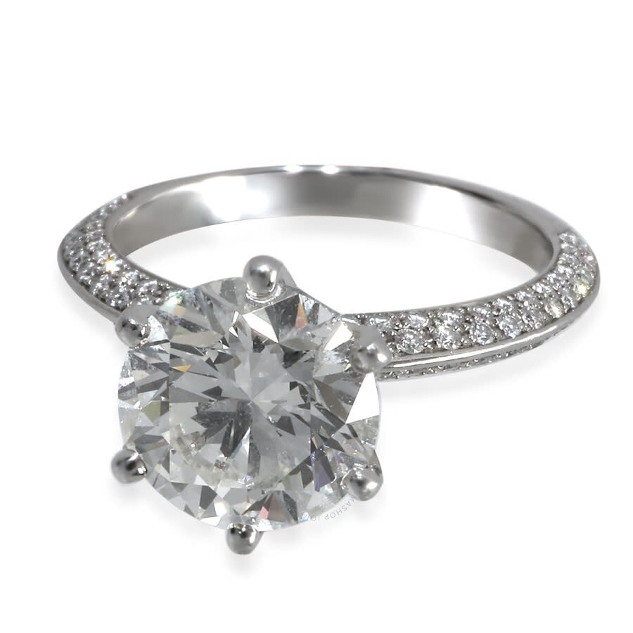 The classic engagement ring. Tiffany & Co. introduced its first solitaire engagement ring in 1886. Featuring a single center stone, the solitaire engagement ring is typically set on a plain band, however some styles may feature a pave band. Retails for 59900 USD. In excellent condition and recently polished. Ring size is 4.75. Comes with Box;Tiffany Diamond Certificate;Original Receipt; Tiffany Ladies Rings. Pave Solitaire series. SKU: 146186. Color: White. Metal Type: Platinum. Metal Stamp: Platinum-950. Gem stone type: Diamond. Stone weight: 2.57ct. Ring style: Engagement. Pre-Owned Tiffany Co. 2.94 ct Diamond Pave Solitaire Engagement Ring. GENERAL Box: No Papers: No Brand Type: Designer Preowned Item Condition: Excellent Color: White Collection Name: Pave Solitaire INFORMATION Brand: Tiffany & Co. Series: Pave Solitaire Gender: Womens Model: 146186 DETAILS Size Info: 4.75 Ring Size: Ring Size 4.75 Ring Style: Engagement Material : Platinum Metal Stamp: Platinum-950 Stone Type: Diamond Stone Weight: 2.57 ADDITIONAL INFO Additional Info: Includes Box, Tiffany Diamond Certificate, Original Receipt Jomashop Sku: PRE-J-A5CGV Department: Jewelry Category: Rings