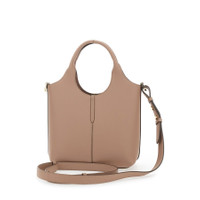 Tod'S Ebr Mini Beige Shoulder Bag With Logo Metal Plate In Leather Woman